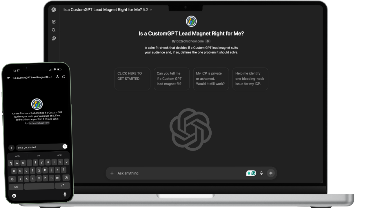 A calm fit-check that decides if a Custom GPT lead magnet suits your audience and, if so, defines the one problem it should address for your leads/clients.